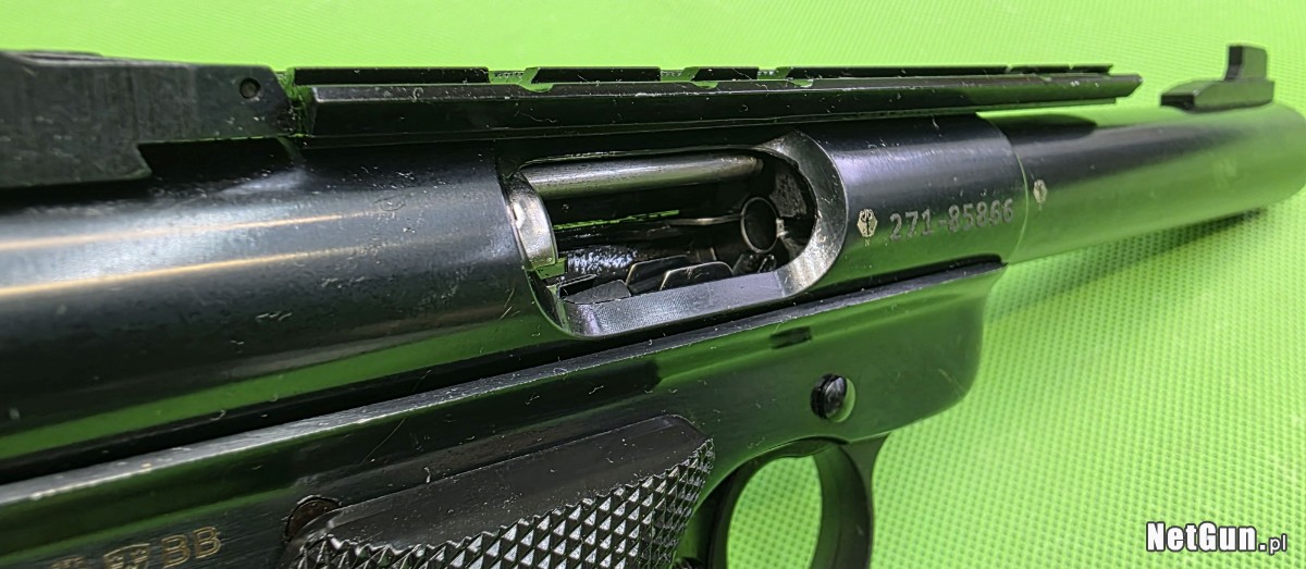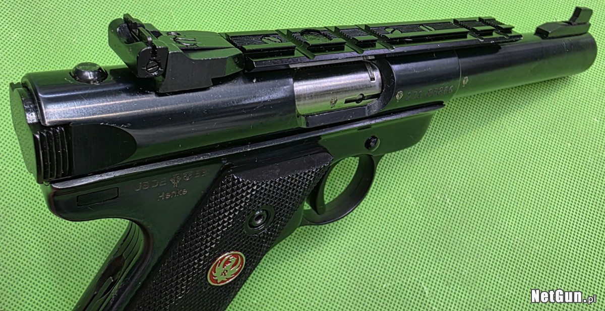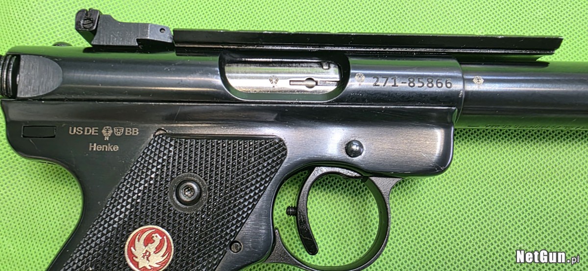 Znakomity, półautomatyczny pistolet sportowy, amerykańskiej firmy Ruge. Porządna, stalowa konstrukcja, szczerbina regulowana mikrometrycznie w obu płaszczyznach. Grubościenna, ciężka lufa zapewnia doskonałą celność i skupienie. Oferowany egzemplarz został wyprodukowany w 2011 r. i znajduje się w doskonałym stanie – jest jak nowy i w 100% oryginalny. Lufa nieskazitelna oczywiście. W komplecie jeden magazynek oraz oryginalna szyna montażowa na komorze zamkowej.
