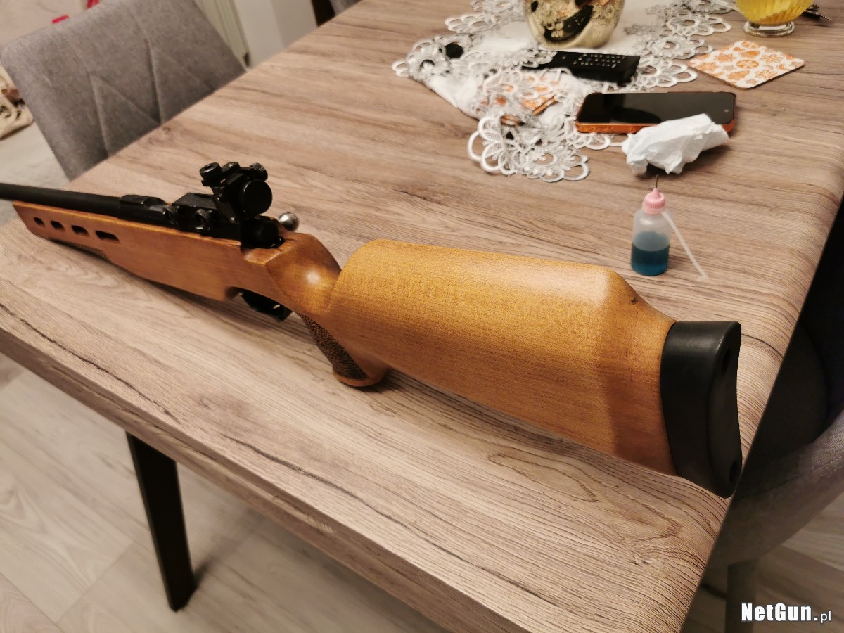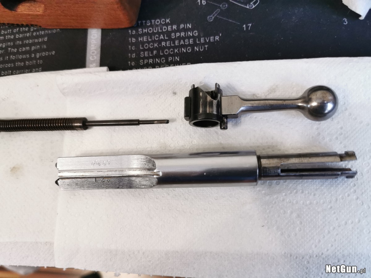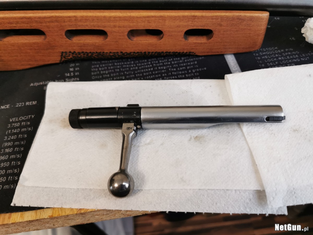 Zakupiony przeze mnie 9.03.2025 od prywatnej osoby, strzeliłem z niego paczkę amunicji (50 sztuk naboi). Nie było strzelane na sucho, komora nabojowa nie jest sklepana. Stan oceniam na bardzo dobry, poprzedni właściciel odnowił osadę. Po zakupie rozebrałem zamek i porządnie wyczyściłem oraz lekko przesmarowałem. Zamek i mechanizm spustowy chodzą płynnie, osada posiada montaż na pas wraz z zaślepką. Karabin posiada celownik dioptryjny i muszkę tunelową z insertem.