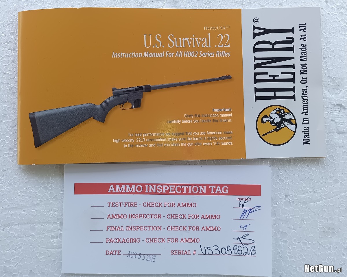 Posiadam do sprzedania karabinek Henry Survival US AR-7 model H002B, bardzo mało używany (wystrzelane około 250 szt amunicji), kompaktowy celny karabinek, nowy zakupiony w sklepie z bronią w grudniu 2025r
