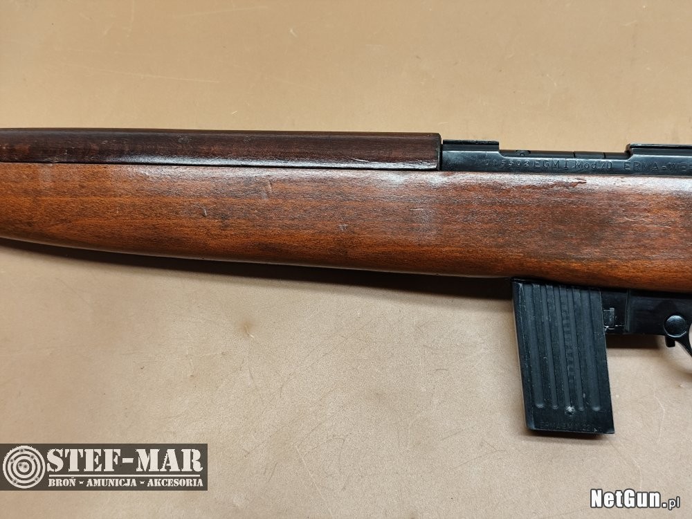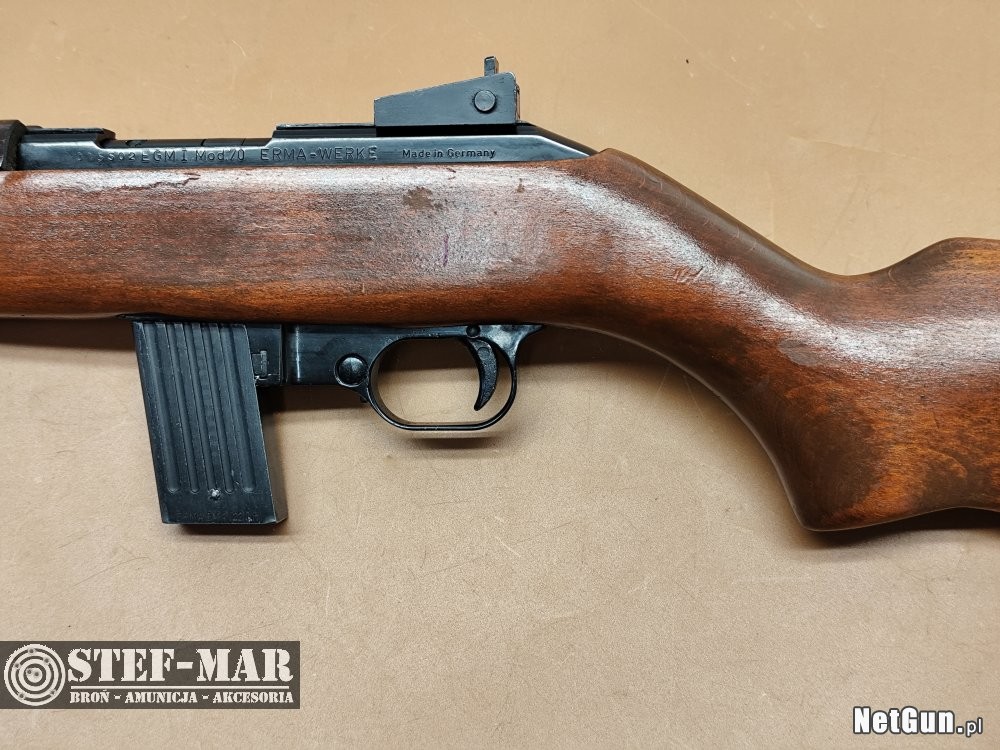 Erma Mod.70 to samopowtarzalny karabinek, przeznaczony dla młodych strzelców i nieco niższych osób do treningu strzeleckiego i rekreacji .Chętnie wybierany przez kolekcjonerów szukających imitacji M1 Carbine. Karabinek posiada szczerbinkę regulowaną w pionie i poziomie. Broń z niewielkimi śladami na osadzie i kolbie