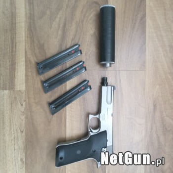 Pistolet tarczowy belgijskiej produkcji. Szkielet w pełni stalowy. Szczerbina regulowana w obu płaszczyznach. Zamek po opróżnieniu magazynka zostaje w tylnym położeniu. Posiada przełącznik umożliwiający strzelanie na "sucho" bez ryzyka uszkodzenia iglicy, Pistolet znajduje się w bardzo dobrym stanie...