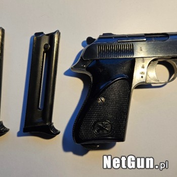 Pistolet używany w stanie bdb. Lufa gładka z bardzo w wyraźnym gwintem. Szkielet i zamek stalowy. W zestawie z 1 magazynkiem Wyprodukowany we Włoszech. Możliwy dowóz broni i amunicji.