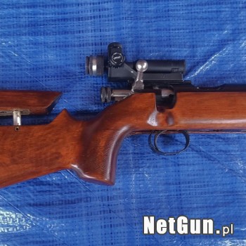 Doskonały, jednostrzałowy karabinek wyczynowy w klasycznej wersji z 1974 r. Szyna 11 mm na całej komorze zamkowej. grubościenna, samonośna, matchowa lufa oraz regulowany mikrometrycznie w obu osiach diopter, a także mucha tunelowa zapewniają doskonałą celność i powtarzalność. Broń wyposażona w orzec...