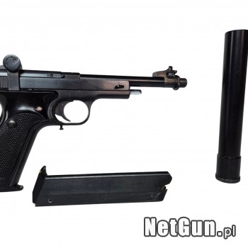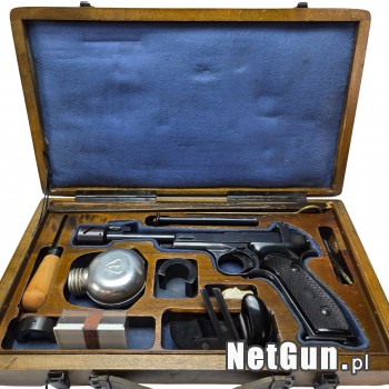 Pistolet bocznego zapłonu FN Browning Match 150 kal. 22lr. Klasyczny pistolet sportowy. Produkcja FN Herstal Belgia Stan bardzo dobry - obecne są drobne zarysowania powierzchni wynikające z normalnej eksploatacji broni. Oksyda nie jest wytarta. Technicznie bez zarzutu. Magazynek 10 nabojowy. P...