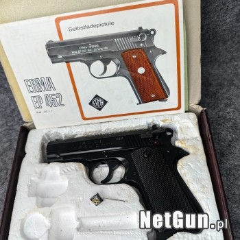 Pistolet bocznego zapłonu ERMA mod. EP452 w kal. 22lr. Wyglądem zewnętrznym przypomina pomniejszony pistolet Colt Government. W związku z wykorzystaniem rozwiązań z produkowanych wcześniej przez Ermę imitacje pistoletu Walther PPK posiada mechanizm spustowy SA/DA i bezpiecznik blokujący iglicę na za...