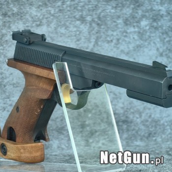 Pistolet Hammerli model 208 International kal. .22LR Stan techniczny i wizualny BDB. Normalne ślady używania, lufa lustrzana, mechanicznie wszystko chodzi pięknie, jak w szwajcarskim zegarku. Drobny mankament - poprzedni właściciel lekko poszerzył szczelinę w szczerbinie. Polecam!