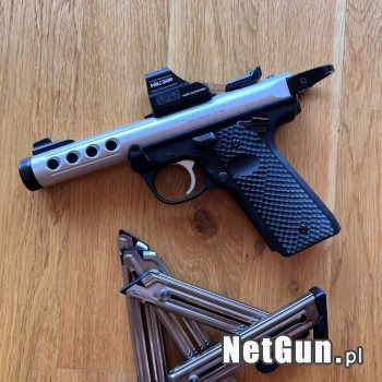 Na sprzedaż pistolet Ruger Mark IV 22/45 Lite w kalibrze 22LR. Wizualnie i technicznie w stanie idealnym. Zmienione w nim zostało całkiem sporo: > Płytka montażowa pod kolimator Tandemkross Shadow Mount V3.0 > Dźwignia przeładownia Tandemkross Halo Charing Ring > Zestaw spustu (przerywacz, kurek,...