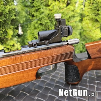 Najwyższej klasy karabinek wyczynowy w wersji z osadą Super Match z chwytem pistoletowym i regulowaną półką oraz lufą Super Match (cięższą i dłuższą niż standardowo – jak w modelu 1813 i 1913) z dodatkowymi dwoma szynami 11 mm. Precyzyjny diopter mikrometryczny, mucha tunelowa, orzechowa osada z szy...