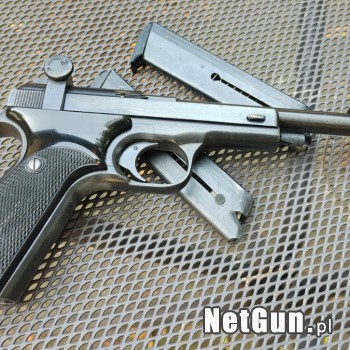 Niezawodny w całości stalowy pistolet tarczowy belgijskiej produkcji – w bardzo rzadkiej wersji z lufą o długości 170 mm (standard to 150 mm) oraz drugim systemem lufy o długości 115 mm. Szczerbina regulowana mikrometrycznie, zamek po opróżnieniu magazynka zostaje zablokowany w tylnym położeniu. Of...