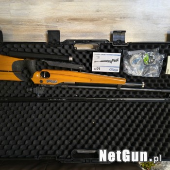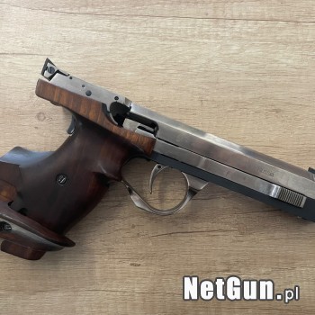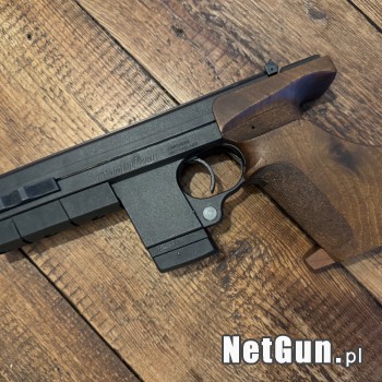 Rzadki, jednostrzałowy, wyczynowy pistolet dowolny z elektronicznym spustem, zasilanym ogólnie dostępną baterią 9 Volt. Niezwykle precyzyjna broń, bardzo celna i przyjemna w obsłudze. Chwyt Morini anatomiczny, praworęczny z regulowaną półką, dostosuje broń do każdej miemal dłoni. Egzemplarz znajduj...