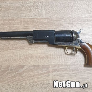 Rewolwer czarnoprochowy Colt Walker, czyli największy z dostępnych na rynku. Kal. 44BP Produkcja włoska - Armi San Marco. Stan techniczny dobry ale do strzelania nie polecam, raczej do kolekcji, na ścianę. Szczelina co prawda minimalna ale wyczuwalna jest nieosiowość między lufą a komorami bębna...