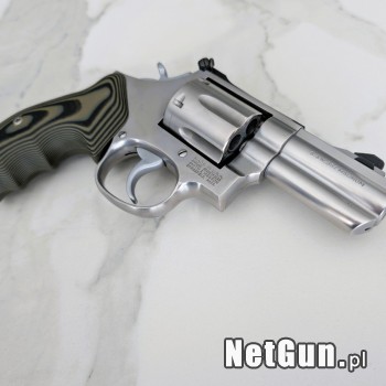 S&W 686-3 Performance Center Mag Comp. Lufa 3", kaliber .357Magnum/.38Special. Rewolwer wykonany w limitowanej do 350 egzemplarzy serii w zakładach S&W Custom Shop w 1992 roku. Egzemplarz nosi numer seryjny 208. Satynowe wykończenie, portowana lufa, chwyt G10 VZ Grips. Mechanicznie i wizualnie w bar...