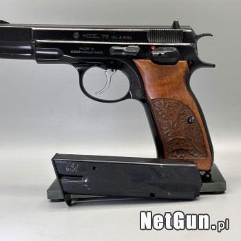 Pięknie zachowana, niezniszczalna CZ75 i do tego w wersji lakierowanej oryginalnie, produkcji Czechosłowackiej ( jeszcze metodą frezowania wszystkich elementów) z 1987roku. Tak jak wszystkie 75-tki ( bez B) jest bez blokady iglicy co ma oczywisty wpływ na niezawodność i płynność przeładowania. Kali...