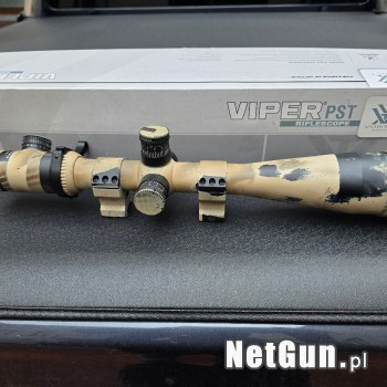 Luneta używana w dobrym stanie, pomalowana w "taktyczne" barwy. Komplet z montażem, pokrywką przednią Buttler Creek oraz wajchą zmiany przybliżenia. Możliwy odbiór osobisty w Katowicach!