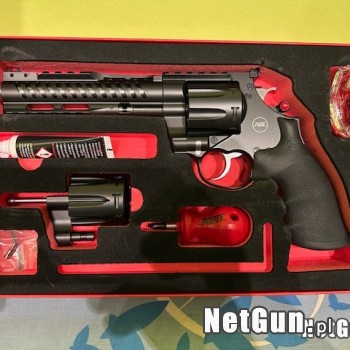 Na sprzedaż rewolwer Korth NXS 6'' z dwoma bębnami 8 nabojowymi jeden cal. .38/357 drugi 9mm, cały zestaw na jedną promesę. Przelot .38 ok. 200 kulek, 9mm ok. 20 kulek, nie strzelałem z .357. Rewolwer jak nowy, kupiony w październiku zeszłego roku w RP Arms. Dodatkowo dodaje dedykowany kompensator,...