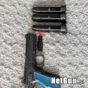 Super pistolet zarówno do tarczy jak i dynamiki. Ja go używałem wyłącznie tarczowo do odbębnienia zawodów czyli 2 razy w roku po 10 strzałów. Kolega wcześniej wystrzelił jakieś 350 naboi. Pistolet ma wymieniony spust na sportowy. Nie widzę oznak użytkowania.