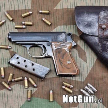 Witam. Sprzedam perełkę z prywatnej kolekcji - przedwojennego Walthera PPK produkcji zakładów w Zella-Mehlis z 1935 roku. W zestawie 1 przedwojenny magazynek z płaską stopką oraz z logo Walther na wstędze. Akcesoria widoczne na pierwszym zdjęciu nie są przedmiotem sprzedaży. Producent: Waffenfab...