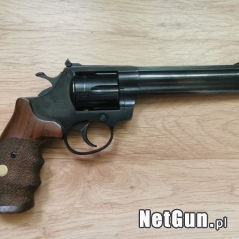 Rewolwer w stanie bardzo dobrym. Lufa 6". Wystrzelone ok 500 szt. Gwint bardzo wyraźny. Kufer, wycior, instrukcja. W gratisie kabura materiałowa. Możliwy dowóz broni i amunicji.