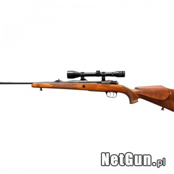 Klasyczny sztucer myśliwski renomowanej firmy Voere, w uniwersalnym i cenionym kalibrze 7x64. Broń wyróżnia się orzechową osadą oraz niezawodnym zamkiem z przesuwną blokadą bezpieczeństwa. Na sztucerze osadzona jest japońska luneta 6x42 z klasyczną myśliwską siatką nr 1. Stan dobry, zgodny z wiekiem...
