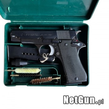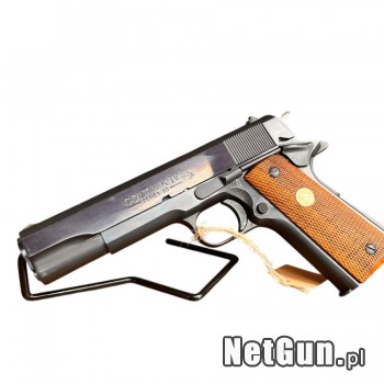 Colt Government Mk IV Series 80 w kalibrze 9x19 mm to klasyczny pistolet samopowtarzalny wyprodukowany w 1989 roku, zaprojektowany głównie do zastosowań służbowych i sportowych. Konstrukcja oparta jest na mechanizmie Browninga z krótkim odrzutem lufy i ryglowaniem przez przekoszenie, co zapewnia nie...