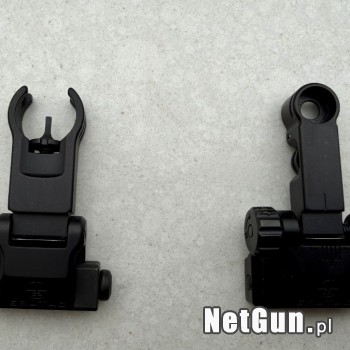 Otwarte przyrządy celownicze mocowane na szynę picatinny, wersja ta posiada przednią muszę w otwartym okręgu. Stan idealny użyte tylko kilkukrotnie.