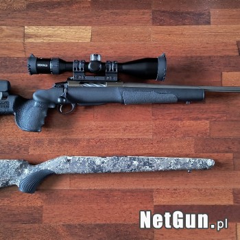 Sprzedam karabin Tikka T3X Lite Veil Wideland .308Win, przebieg około 200 strzałów. W cenie 6200zł karabin z fabryczną osadą (dół zdjęcia) oraz zamontowana szyna picatinny Recknagel (wartość 330zł). Cena za osadę GRS Berserk (na której zamontowana jest w tej chwili broń) - 1900zł. Dodatkowe szcz...