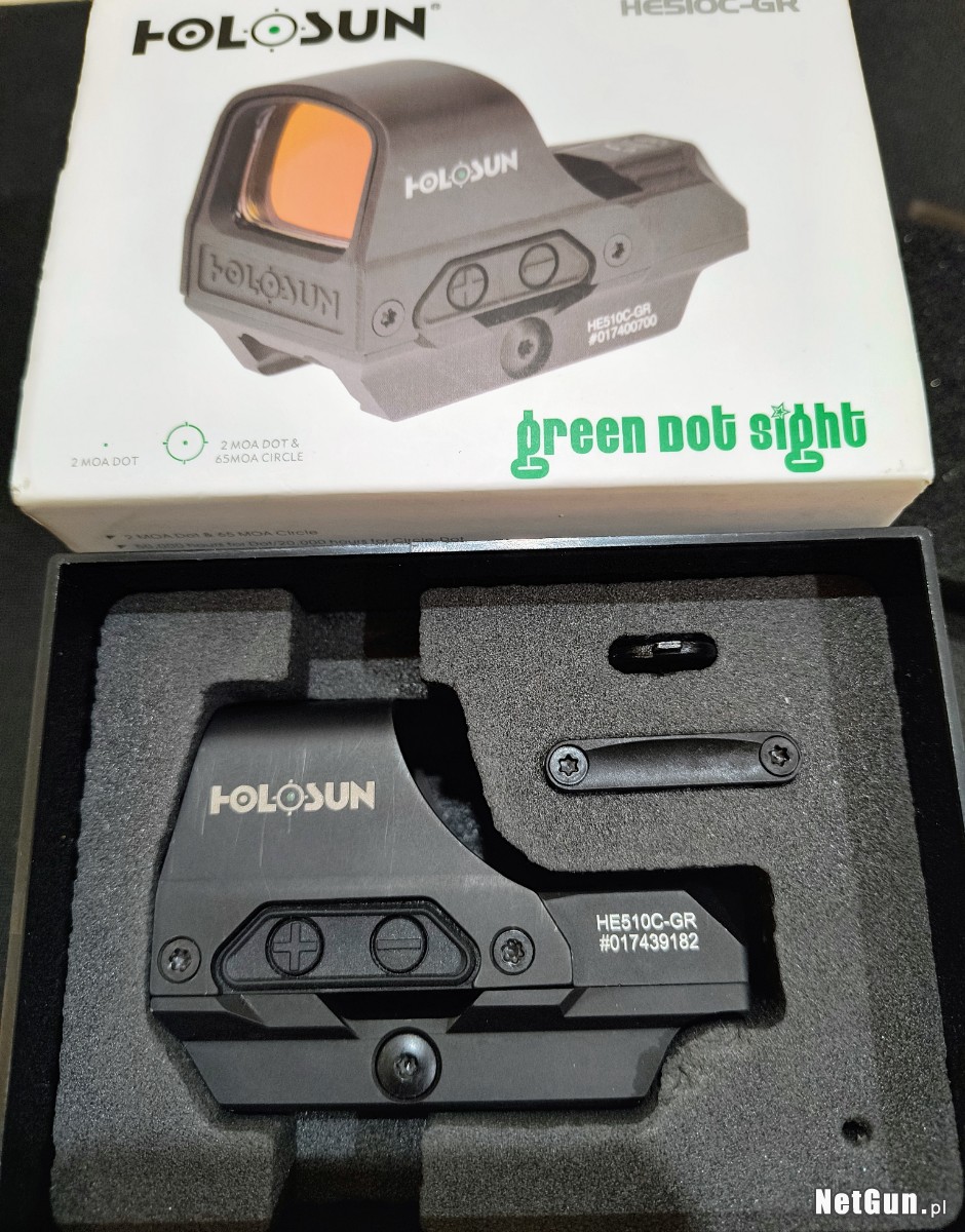 Używany w bardzo dobrym stanie, niewielkie ślady otarć, drobne ryski. Holosun HE510C-GR Elite to otwarty kolimator z możliwością wyboru jednego z trzech punktów celowniczych: klasyczną kropkę 2 MOA, okrąg 65 MOA oraz ich połączenie. Celownik został wyposażony w system zaawansowanych soczewek, wielowarstwowo pokrytych powłokami odbijającymi co zapewnia klarowny i jasny obraz. Wyposażony we wbudowane ogniwo słoneczne dodatkowo zasilające kolimator, posiada zielony kolor punktu celowniczego.