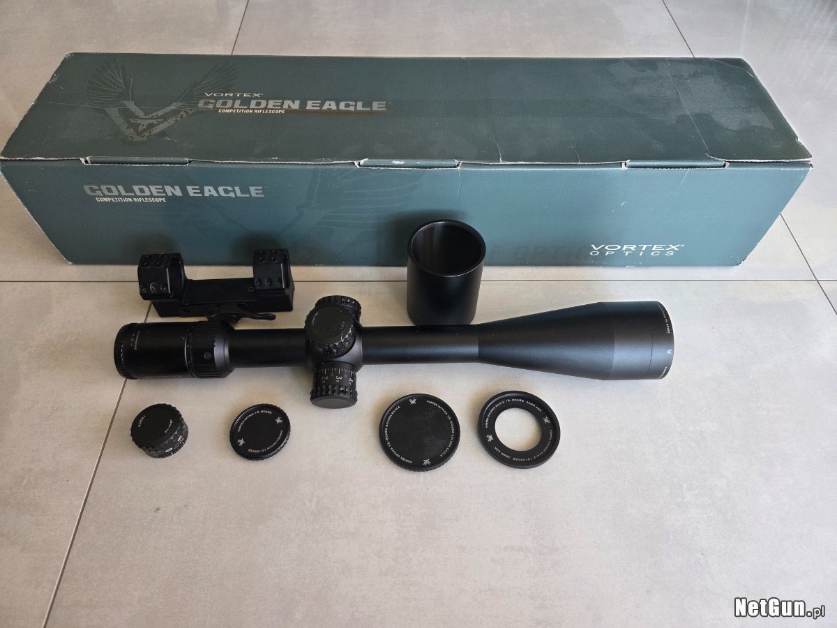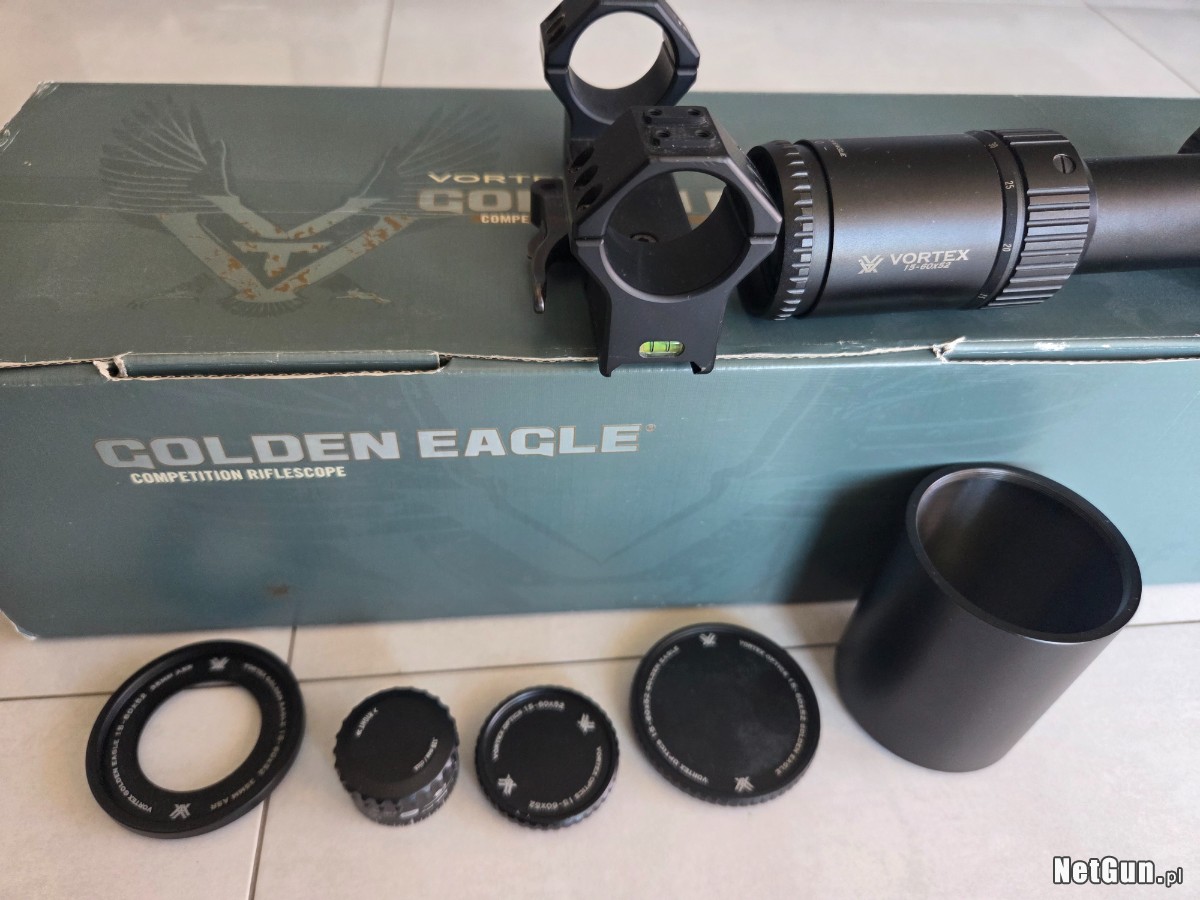 Sprzedam lunetę Vortex Golden Eagle HD 15-60x52 tubus 30mm, krzyż w drugim planie SCR-1, 1 klik - 1/8 MOA. Dożywotnia gwarancja producenta na lunetę. Do lunety dodaję szybki, jednoczęściowy montaż Contessa o pochyleniu 20 MOA.