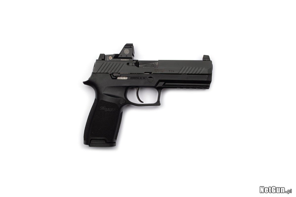 Sklep WALKIRIA k.Koszalina | Bezpłatny dowóz - regularne trasy w każdym miesiącu | tel. 72 72 72 993 | Więcej zdjęć w dużej rozdzielczości na stronie: walkiria.sklep.pl. Kod dla wyszukiwarki: K2290 | Pistolet samopowtarzalny centralnego zapłonu Sig Sauer Mod. P320RX, kal. 9x19. Pełnowymiarowa wersja użytkowanego przez Siły Zbrojne Stanów Zjednoczonych pistoletu w konfiguracji z kolimatorem Sig Sauer Romeo1 (cena nowego kolimatora wynosi ok. 3000zł). Przemyślana, fabryczna konfiguracja, w której jednocześnie można celować z wykorzystaniem kolimatora i specjalnie przeprojektowanych wysokich, mechanicznych przyrządów celowniczych, które można zgrywać wprost przez szybkę kolimatora, co ma niebagatelne znaczenie w przypadku bojowego zastosowania...
