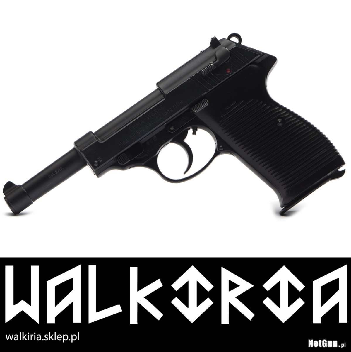 Sklep WALKIRIA k.Koszalina | Bezpłatny dowóz - regularne trasy w każdym miesiącu | tel. 72 72 72 993 | Więcej zdjęć w dużej rozdzielczości na stronie: walkiria.sklep.pl. Kod dla wyszukiwarki: K2327 | Pistolet samopowtarzalny bocznego zapłonu Erma Mod. EP 882S, kal. .22lr. Pistolet produkowany w dwóch modelach 882 i 882S, silnie nawiązuje do legendarnego modelu P38 firmy Walther. Wersja S ma regulowaną mikrometrycznie w pionie i poziomie szczerbinkę oraz lufę o długości 152mm, jak w oryginalnym P38. Ze względu na wagę i wymiary, pistolet znakomicie sprawdzi się we wspólnych strzelaniach z dziećmi, młodzieżą i filigranowymi niewiastami.