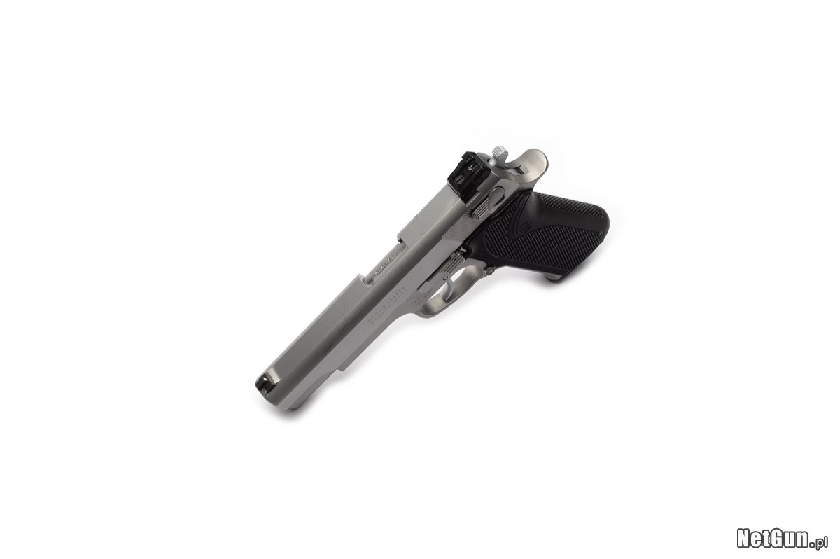 Pistolet samopowtarzalny centralnego zapłonu Smith&Wesson, Mod. 4506-1, kal. .45 ACP. Pistolet trzeciej generacji pistoletów serii 4500 w kalibrze .45ACP. Wykonany w najwyższej jakości, prawie w całości ze stali nierdzewnej, co gwarantuje wyjątkową odporność na trudne warunki atmosferyczne. Wspaniały, duży pistolet, w którym zauważymy wyraźne inspiracje legendarnym Coltem 1911. Rzadkość w Polsce...