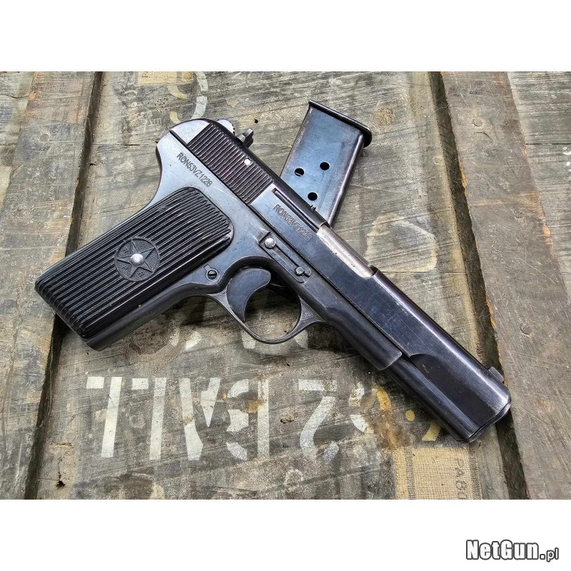 Na sprzedaż klasyczna Tetetka zasilana mocnym i szybkim nabojem 7,62x25 mm. Regulaminowa broń wojsk i policji praktycznie wszystkich krajów bloku wschodniego. Egzemplarz pochodzi z powojennej, rumuńskiej produkcji. Broń w stanie dobrym, zgodny numerycznie. Nie nosi żadnych oznaczeń remontowych. Lufa jasna, gwint wyraźny, miejscami lekko matowa. Rok produkcji 1953. Przy zakupie broni amunicja STV bądź oryginalna sowiecka w cenie 1,50zł/szt. Dostawa na terenie całego kraju!