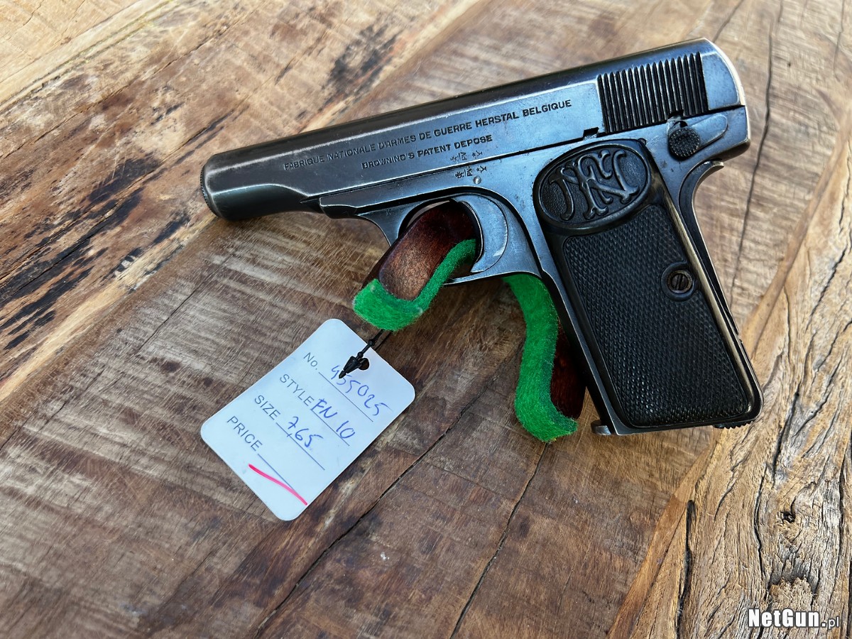 FN 1910, 7,65 mm Browning, czyli klasyczny pistolet samopowtarzalny konstrukcji Johna Browninga. W rękach Gavrilo Principa posłużył do zabicia arcyksięcia Franciszka Ferdynanda, co było bezpośrednią przyczyną wybuchu I wojny światowej. Egzemplarz w oryginalnym stanie zachowania, zgodny numerycznie, z ładną lufą. SKLEP Z BRONIĄ WWW.GLMILITARIA.COM