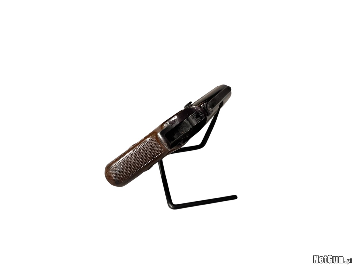 Klasyczny niemiecki Walther PPK z fabryki Ulm, kaliber 7,65 mm Browning. Solidna, elegancka konstrukcja o dyskretnej sylwetce — model o ugruntowanej pozycji w historii broni krótkiej. Egzemplarz sprawny mechanicznie; stan wizualny oceniony jako dobry minus — widoczne przetarcia oksydy. Model PPK był wykorzystywany przez liczne służby policyjne i wywiadowcze, co podkreśla jego kultowy charakter i użytkową wartość kolekcjonerską.
