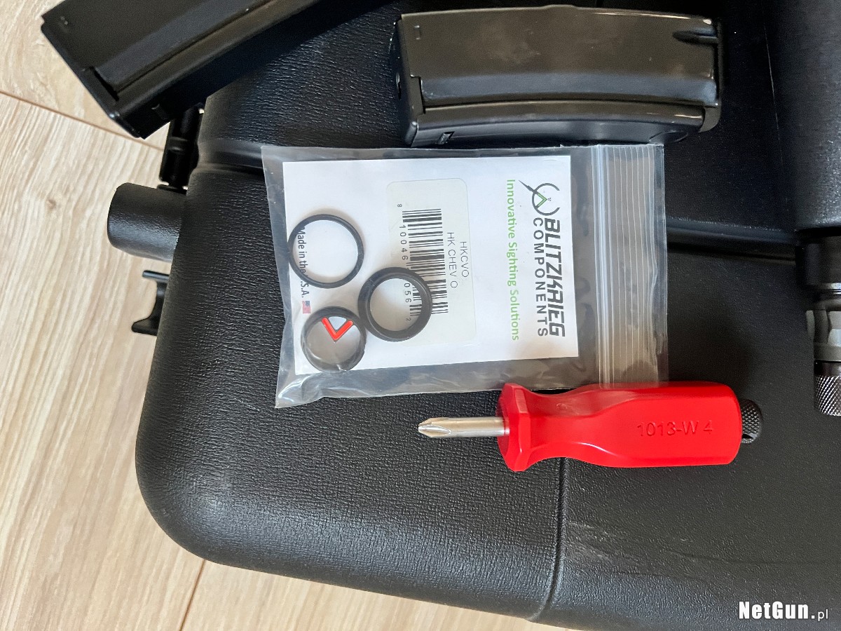 - Przyrzady celownicze firmy Blitzkrieg Components pozwalające zamienić oryginalna muszkę na odbijający światło czerwony szewron