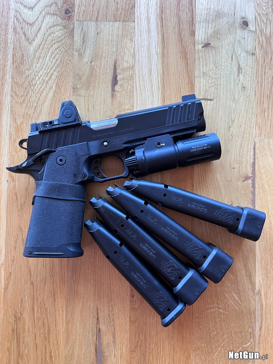 W zestawie płytka pod RMR, Trijicon RMR RM07 i wszystko co było w pudełku - płytka A13B pod Hexa i zwykła maskująca z pełnowymiarową szczerbinką, muszka ze światłowodem, 3 magazynki 20nab i 1 17nab.
