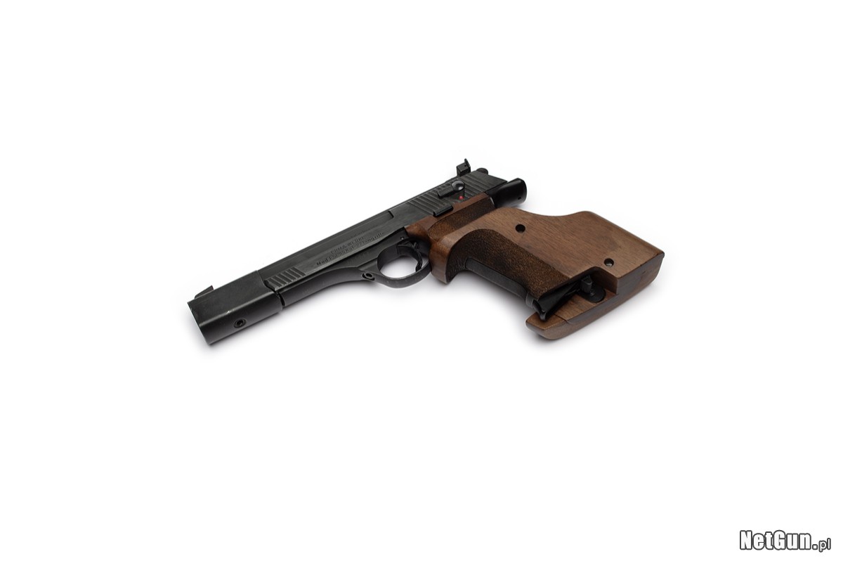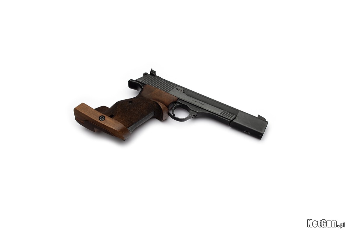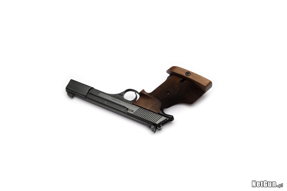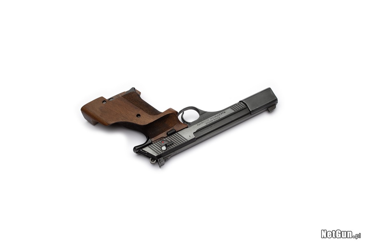 Stan techniczny bardzo dobry, wizualny pomiędzy bardzo dobrym minus, a dobrym plus - naturalne ślady dbałego użytkowania. Powłoki w stanie pomiędzy bardzo dobrym minus a dobrym plus - widoczne sporadyczne drobne wybłyszczenia matowej powłoki, brak zarysowań, wytarć i uszkodzeń (widoczne nierównomierności koloru powłoki wynikają z pozostałości oleju do broni oraz specyfiki wykończenia w półmacie). Powłoka obciążnika w stanie dobrym plus - widoczne drobne wytarcia i wybłyszczenia. Przewód lufy w stanie idealnym - krystalicznie nieskazitelny, potwierdzony badaniem boroskopem Hawkeye. Regulowana, anatomiczna rękojeść w rozm. M, w stanie bardzo dobrym - kilka kosmetycznych śladów użytkowania, brak zarysowań, wgnieceń i uszkodzeń. W pełni stalowa konstrukcja, regulowana mikrometrycznie szczerbina, obciążnik z możliwością demontażu. Pistolet sprawny, po przeglądzie rusznikarskim i testach na strzelnicy. Pochodzi od prywatnego użytkownika. W zestawie jeden magazynek. Długość całkowita: 29,5cm, wysokość 14cm.