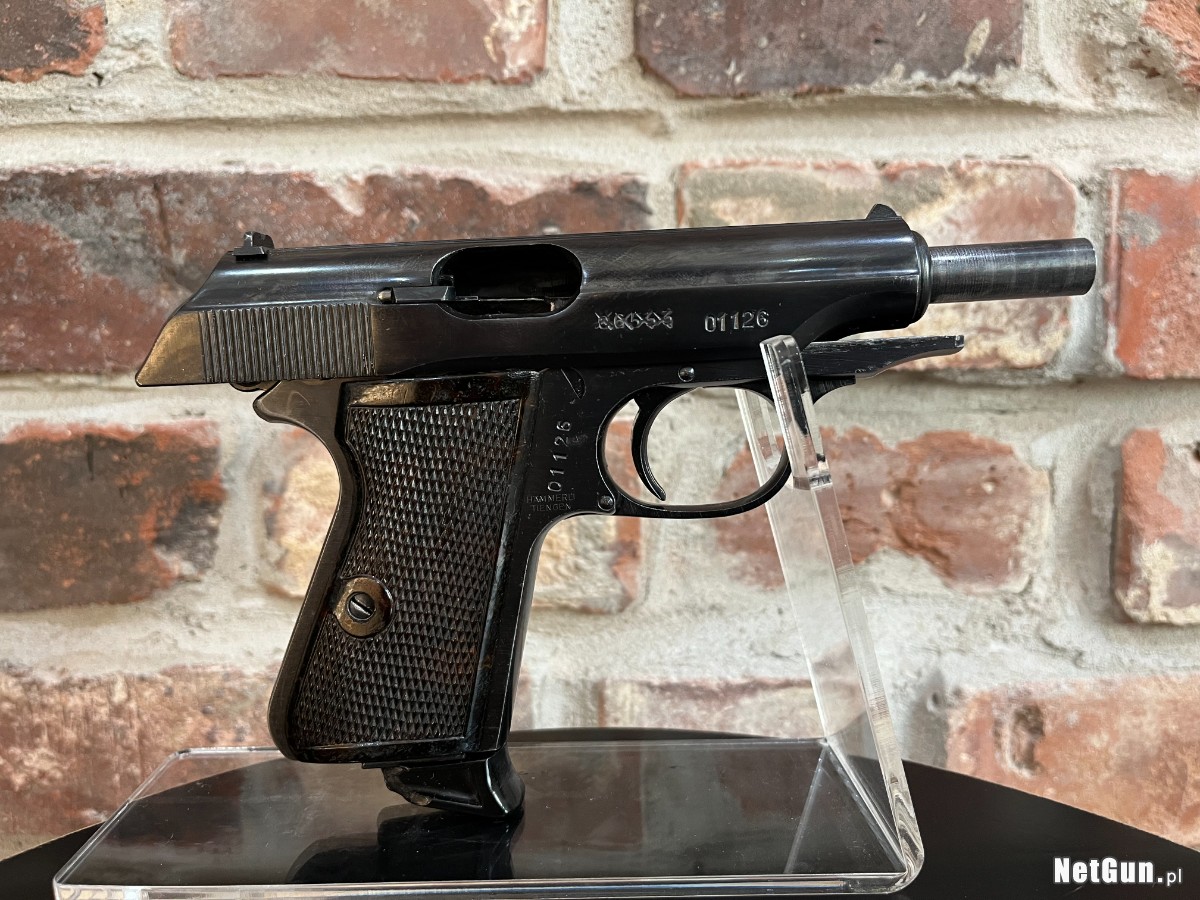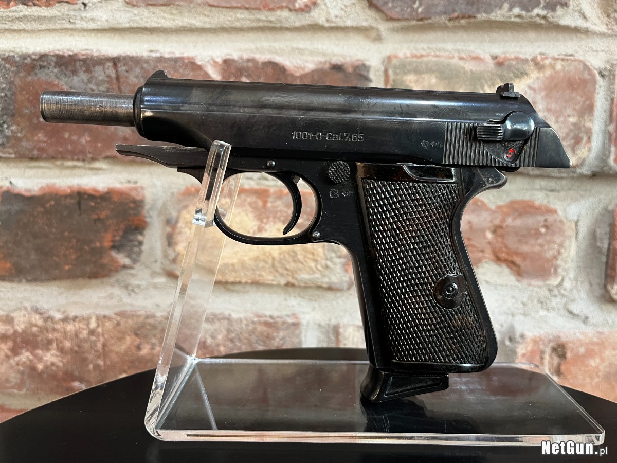 Pistolet samopowtarzalny PP1001 kal. 7,65 Browning. Produkcja THALMANN. W przeszłości wymieniony w broni zamek i nabity nowy nr pasujący do szkieletu. Oksyda w dobrym stanie, lufa bez uszkodzeń z bardzo wyraźnym gwintem. Pistolet z jednym magazynkiem 8 nabojowym. Produkt koncesjonowany, dostępny za okazaniem odpowiednich dokumentów.