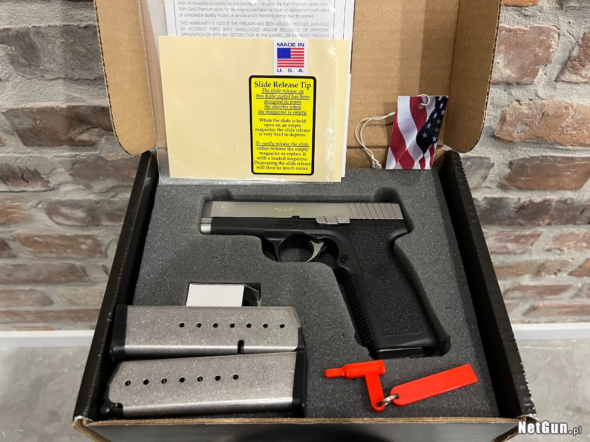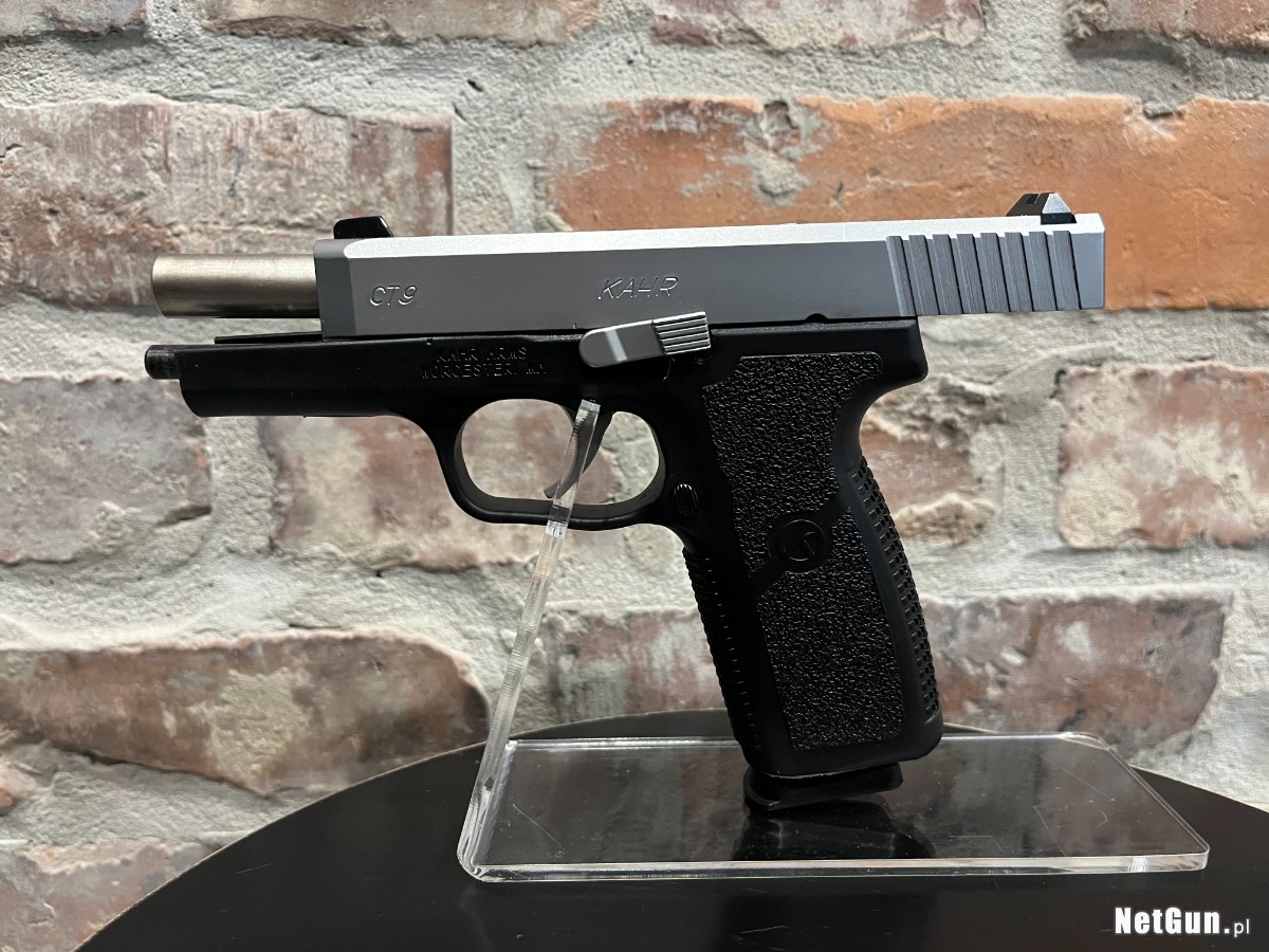 Pełnowymiarowa broń Kahr CT9 w przystępnej cenie jest znakiem rozpoznawczym serii CT. Pistolety te posiadają komorę zamkową wykonaną z czarnego polimeru z zamkiem z matowej stali nierdzewnej. Pistolet wyposażony w celowniki punktowe z regulowaną szczerbinką. Produkt używany, praktycznie nowy (oddane około 200 strzałów). W komplecie 3 magazynki, pudełko, instrukcja, znacznik bezpieczeństwa. Produkt koncesjonowany, dostępny za okazaniem odpowiednich dokumentów.
