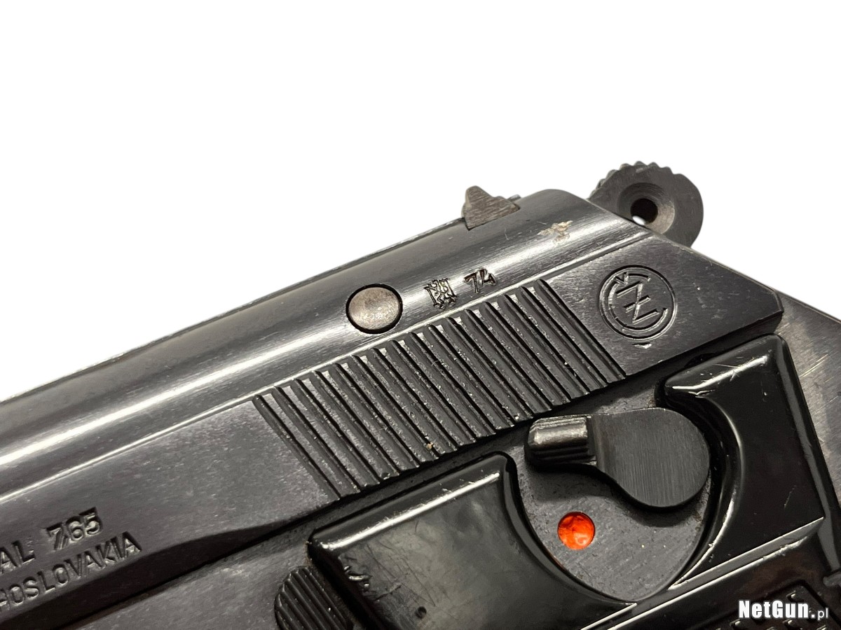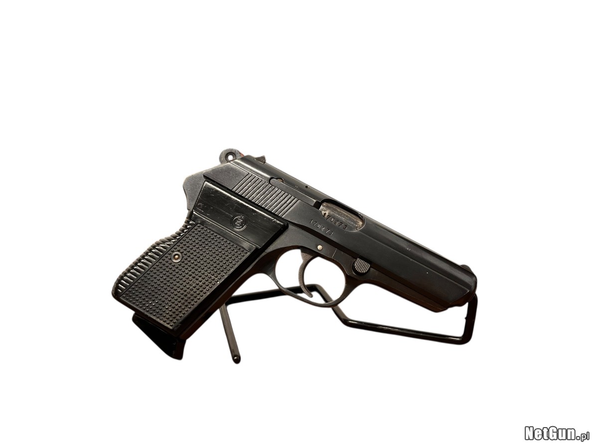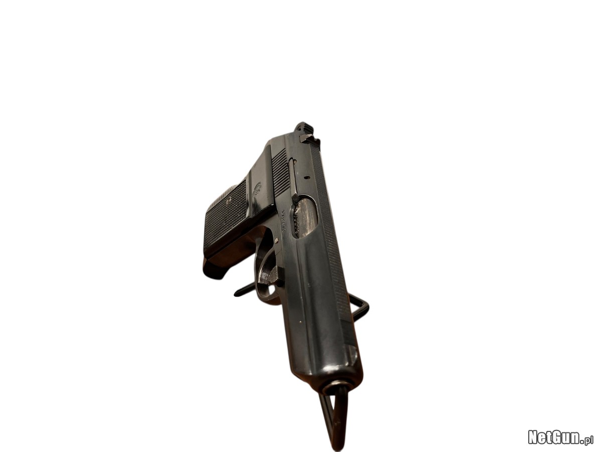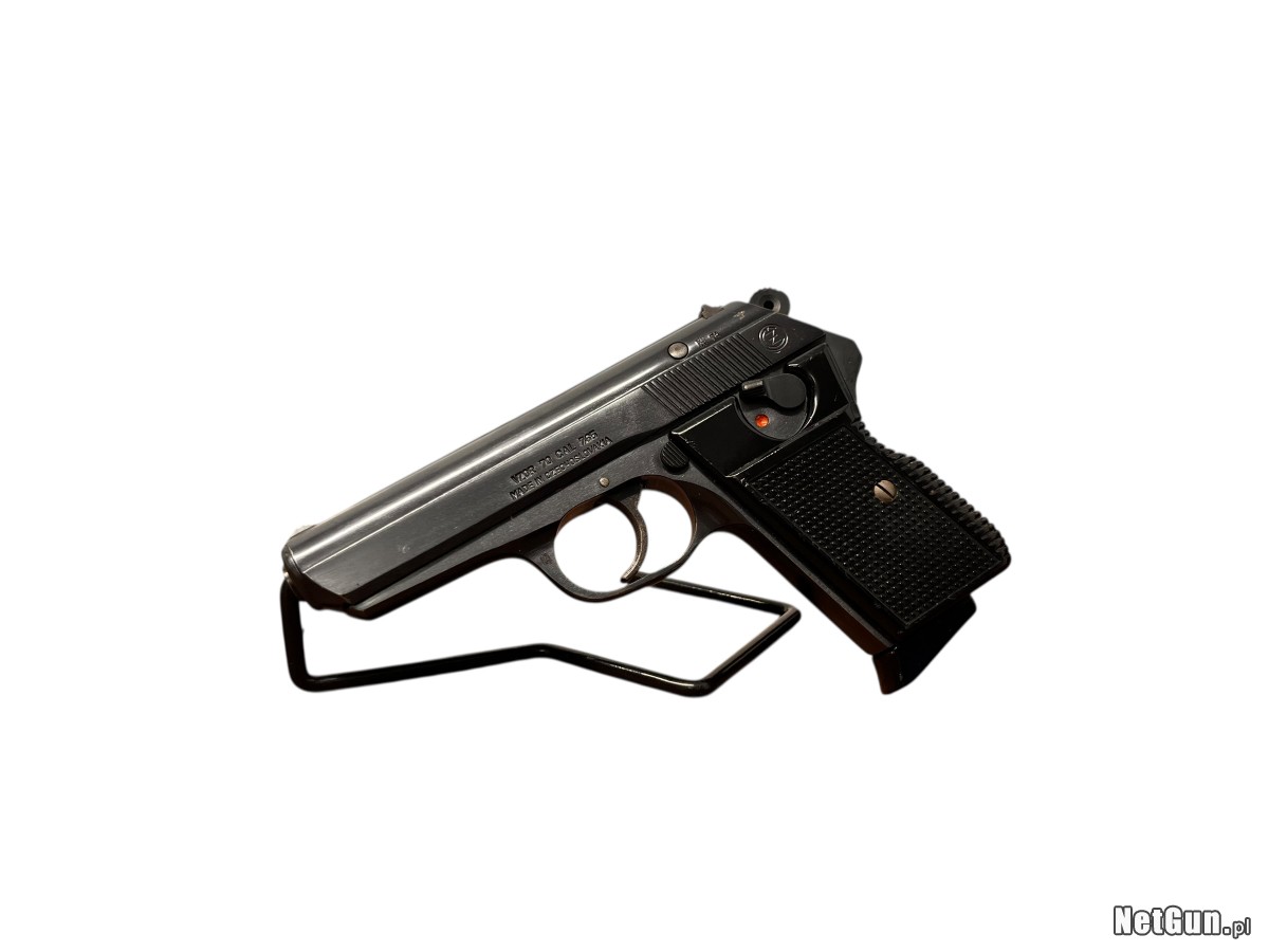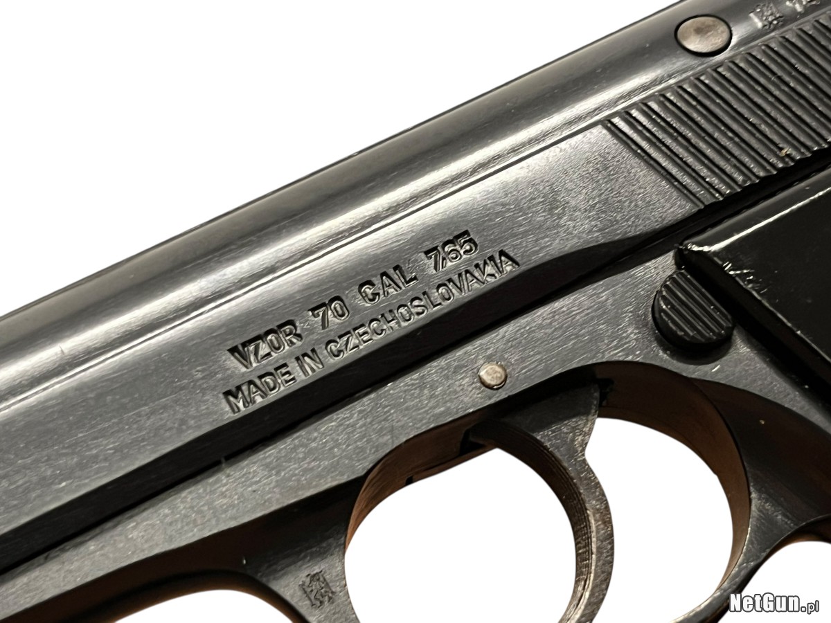 Czechosłowacki klasyk z czasów Zimnej Wojny – CZ Vzor 70 w kalibrze 7,65 mm Browning. Egzemplarz z 1974 roku, sygnowany „Made in Czechoslovakia”. Pistolet ten przez lata stanowił podstawowe wyposażenie czechosłowackiej policji (VB) oraz innych służb bezpieczeństwa. Jego całkowicie stalowa konstrukcja, silnie inspirowana Waltherem PP, gwarantuje pancerną trwałość i niezawodność. Posiada mechanizm spustowy DA/SA z bezpiecznikiem pełniącym też funkcję zwalniacza kurka. Egzemplarz w dobrym stanie z plusem, w pełni sprawny. Świetna propozycja dla kolekcjonera.