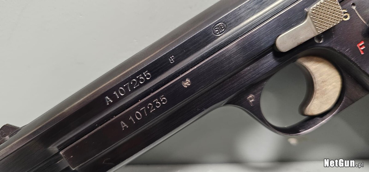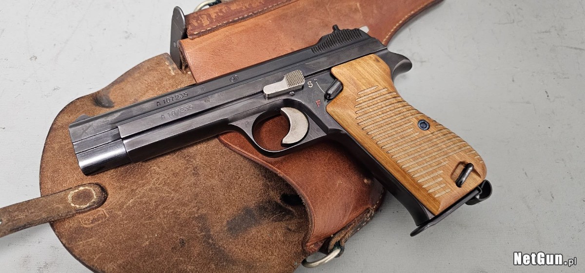Pistolet samopowtarzalny P 210 (Pistole Mod. 49), kal. 9×19. Szwajcarski następca Pistoletu P06/29. Wersja wojskowa o czym świadczy prefiks A. Pierwsza seria produkcyjna (2500 szt). oraz rzadkie drewniane okładki. Przewód lufy w stanie bardzo dobrym – lustro. Broń w oryginalnej powłoce, zgodna numerycznie. Brak obcych oznaczeń. W komplecie dwa magazynki 8 nabojowe oraz oryginalna szwajcarska kabura. Więcej zdjęć na stronie www.mkbarmory.pl Masz pytania: tel. +48 786 953 929 Na zakup wymagana jest promesa. Możliwa dostawa zakupionej broni.