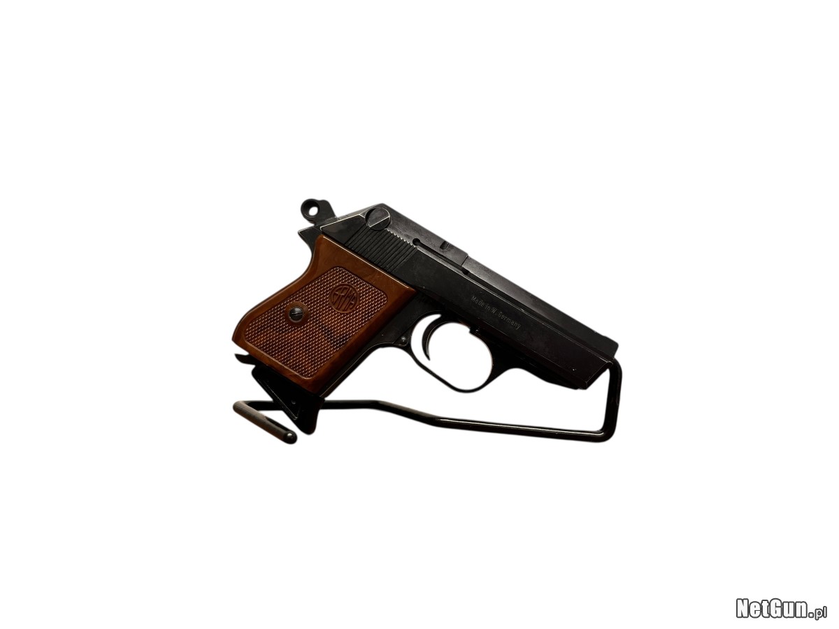 Niemiecki pistolet bocznego zapłonu, którego sylwetka jest wiernym odwzorowaniem legendarnego Walthera PPK. Wyprodukowany przez firmę Erma-Werke, pozwala cieszyć się wyglądem i ergonomią ikony broni do skrytego noszenia, przy minimalnych kosztach strzelania dzięki kalibrowi .22lr. To idealna broń do rekreacji i taniego treningu. Prosta i niezawodna konstrukcja zapewnia bezproblemową eksploatację. Egzemplarz w dobrym, w pełni sprawnym stanie technicznym.
