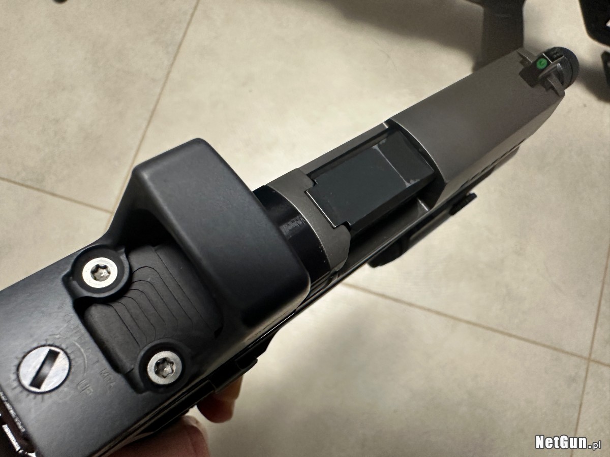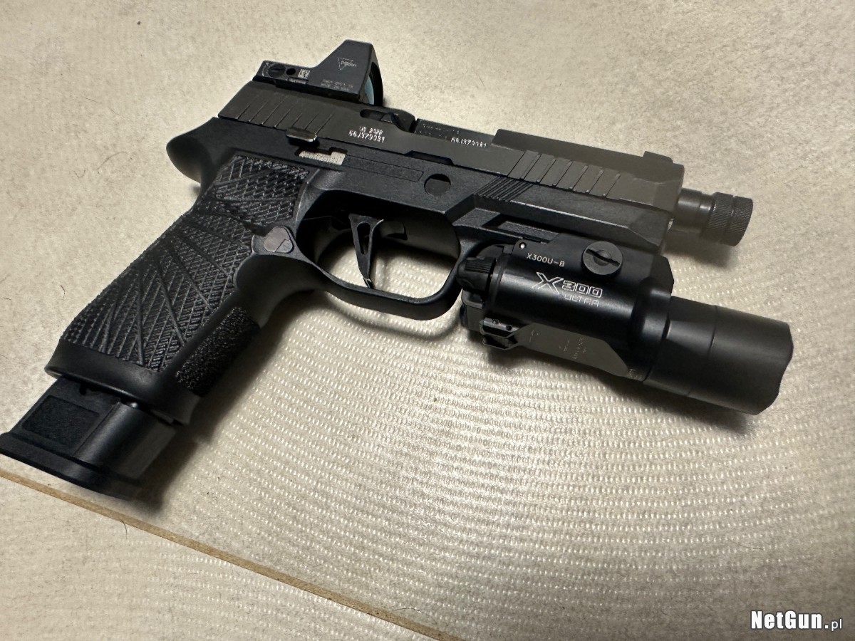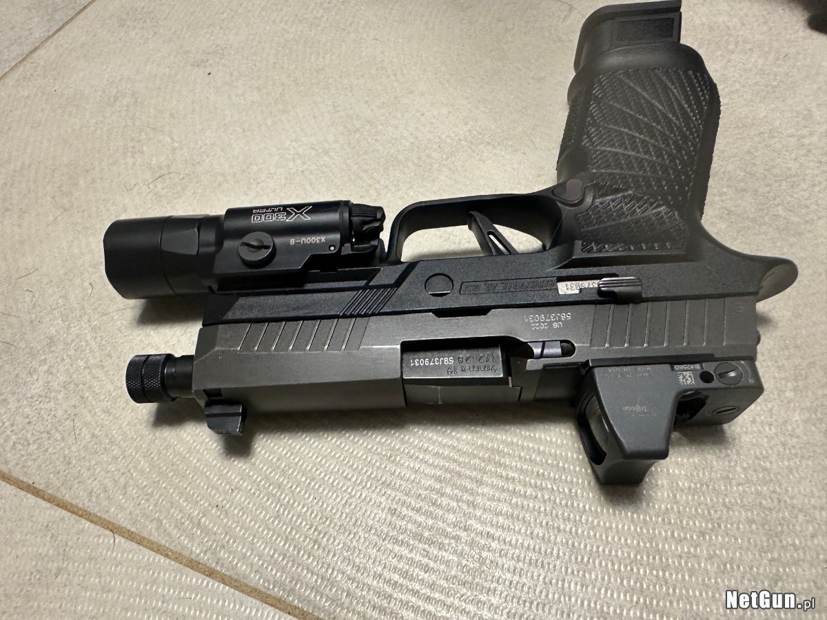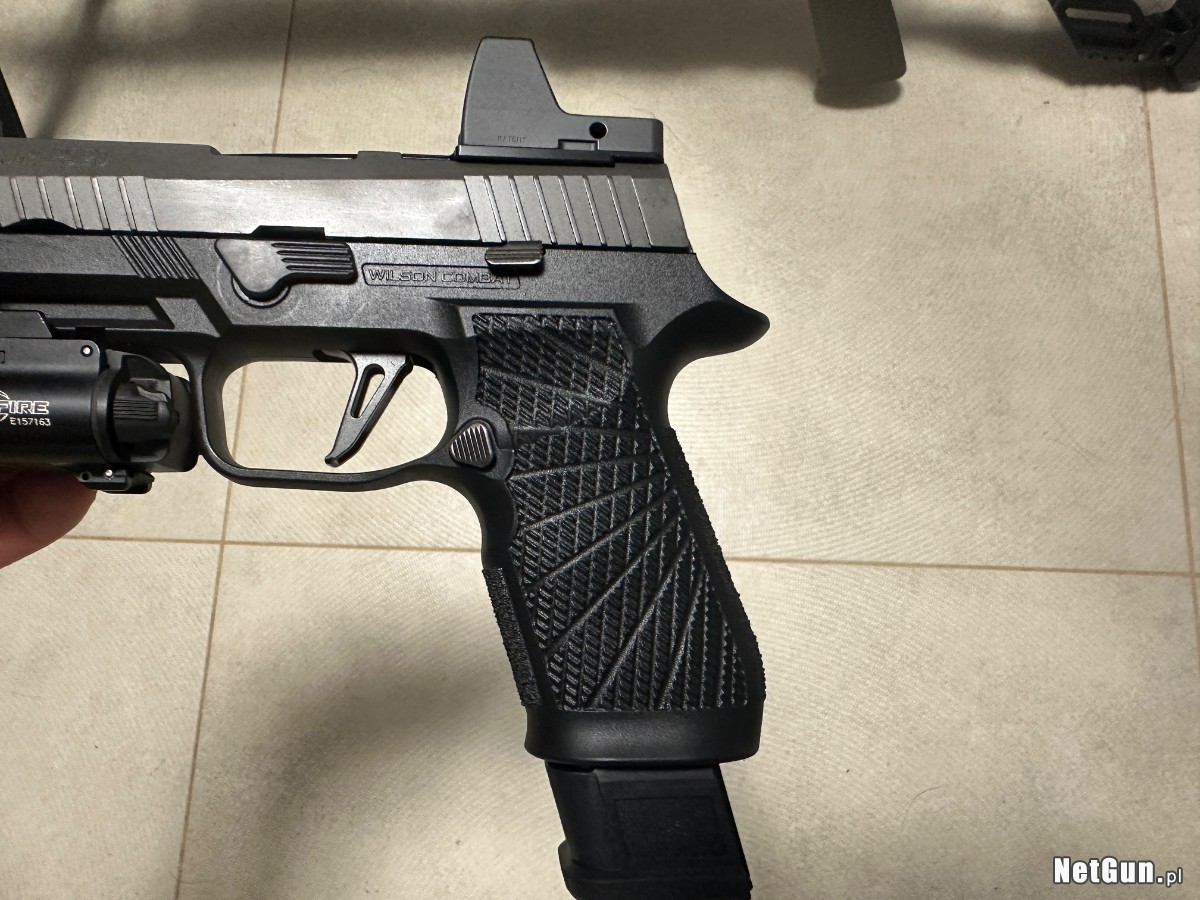 Pistolet w bdb stanie z kolimatorem Trijicon RMR 3,25 MOA oraz dodatkowym chwytem Wilson Combat. Przelot ok 4000 strzałów. Cena bez latarki ze zdjęć. Oryginalne pudełka, magazynki.