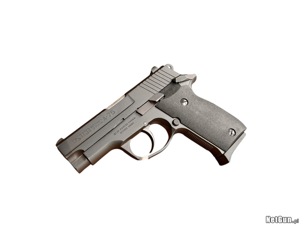 Pistolet Astra A75 w kalibrze 9x19 mm to kompaktowa broń samopowtarzalna hiszpańskiej produkcji, opracowana na początku lat 90. XX wieku z myślą o służbach mundurowych oraz użytkownikach cywilnych. Konstrukcja oparta jest na mechanizmie spustowym typu SA/DA oraz stalowym szkielecie, co zapewnia solidność i niezawodność działania. Model ten wyposażono w bezpiecznik manualny oraz wskaźnik obecności naboju w komorze. Astra A75 była wykorzystywana przez niektóre formacje policyjne w Hiszpanii. Oferowany egzemplarz znajduje się w stanie Dobry +, posiada oryginalne pudełko oraz instrukcję, co zwiększa jego atrakcyjność. Broń dostępna w Fortguns obok Dęblina. Jest możliwość przestrzelania przed zakupem na prywatnej strzelnicy. Kontakt: 666 366 361.