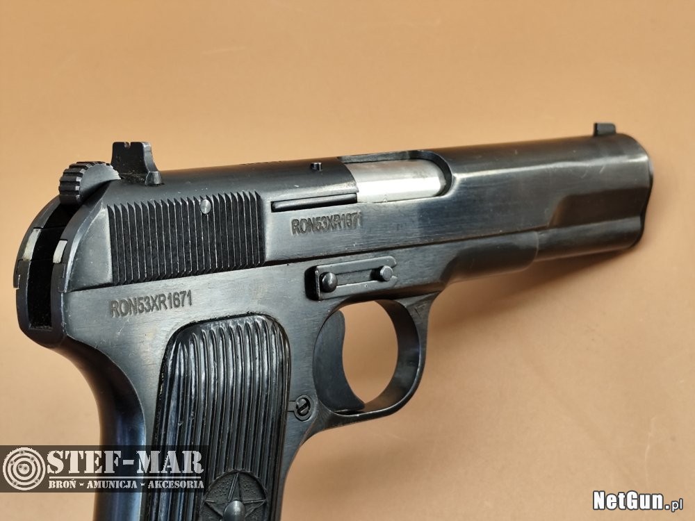 Skonstruowany w 1933r pistolet wojskowy TT-33 oferował dobą celność i skuteczność rażenia na średnich odległościach,a zmodyfkowany nabój Mauser gwarantował dużą przebijalność. Prezentowana broń jest "surplus", i posiada ślady użytkowania