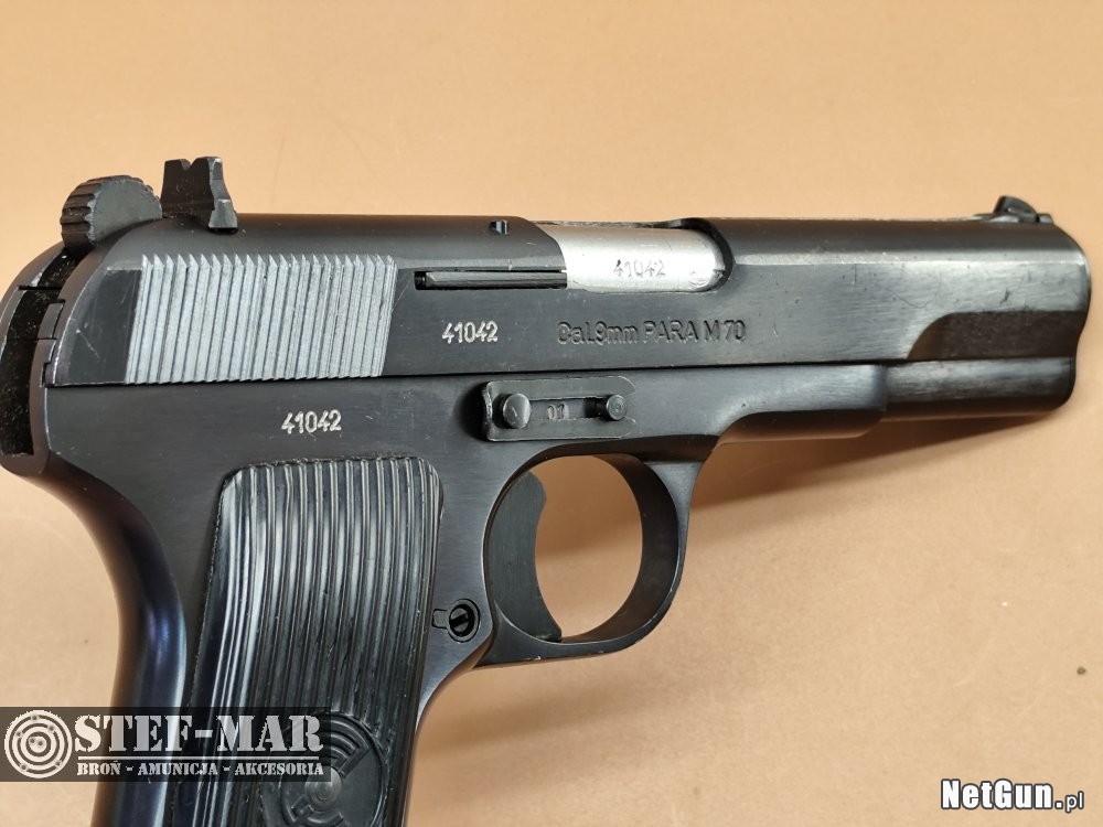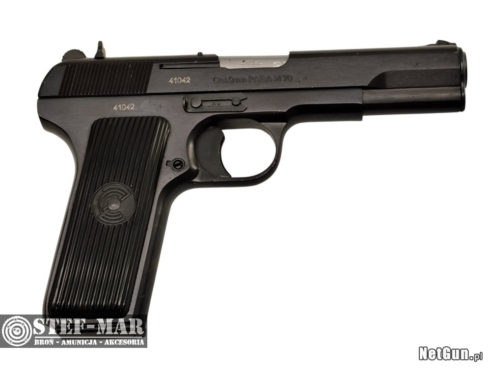 Zastava TT M70,to zmodyfikowana wersja pistoletu TT-33 Tokarev-dodano bezpiecznik,poprawiono mocowanie mieszczącego 9 naboi magazynka.Broń prosta i niezawodna.Pistolet używany,ze śladami zadrapań na oksydzie.