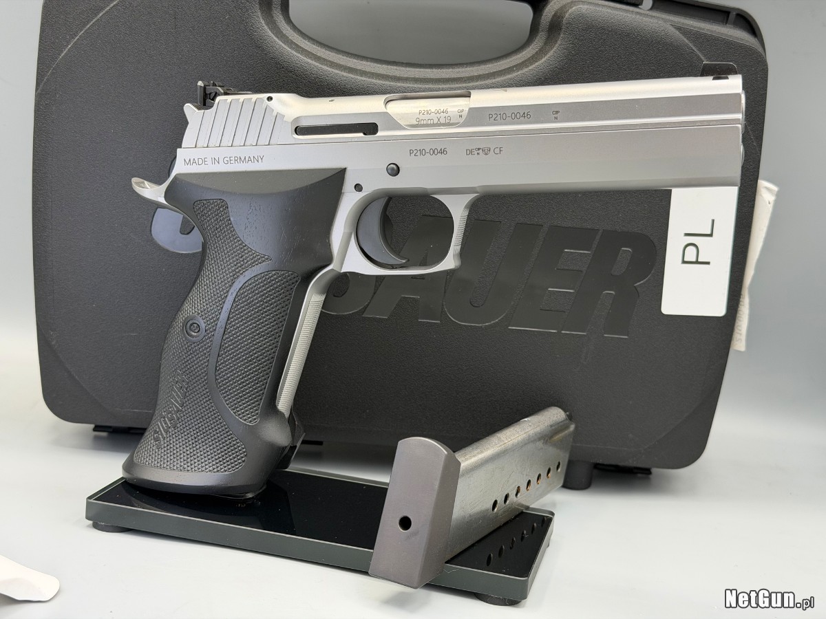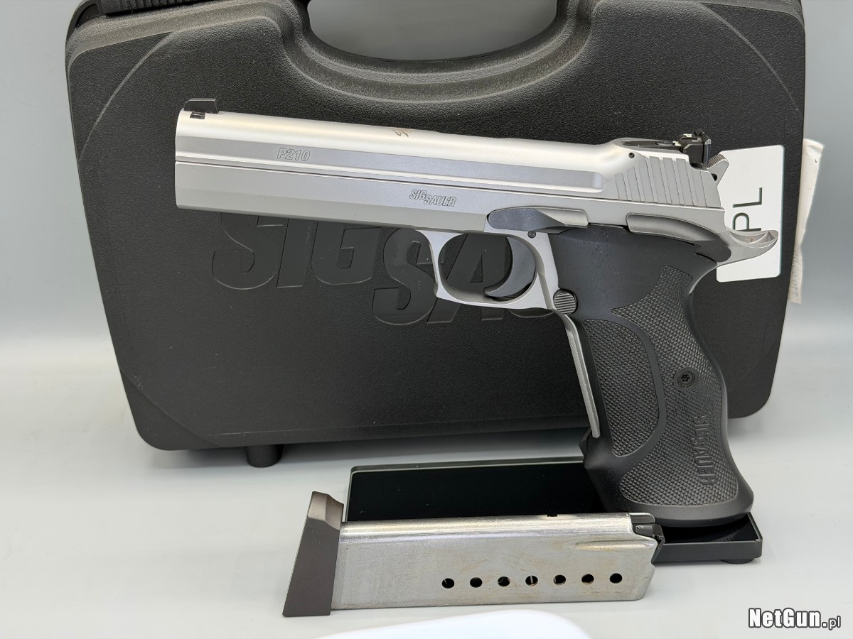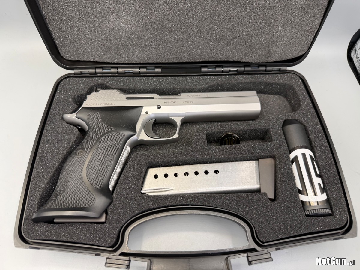 Piękny pistolet Sig Sauer P210 w wersji Target, produkcji Niemieckiej. Z prywatnej kolekcji, stan nowy, jeszcze na tzw dotarciu. Fotografie robione są w mocnym świetle, przez to wszystkie szczegóły na czarnym podłożu są przesadnie widoczne, natomiast na srebrnych błyszczących elementach możliwe są odbicia oświetlenia diodowego. Warto czytać opis albo dopytać, gdy coś budzi wątpliwości. Dopóki widzisz tą ofertę tzn, że jest aktualna ( na bieżąco usuwam po sprzedaży czy rezerwacji).