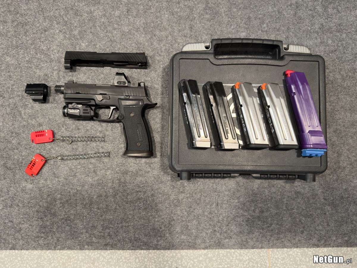 Pistolet SigSauer P320 carry. Na szkielecie axg, lufa kiler innovation, kompensator agency arms, przyrządy mechaniczne hi-vis, spust regulowany. 2 dodatkowe sprężyny, walizka i 4 magazynki. W zestawie 2 zamki z mechanikami oraz z kolimatorem. Dodatkowo 2 kabury jak zna zdjęciach.