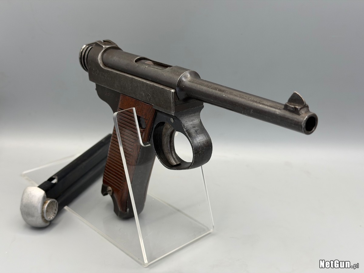 Pistolet japoński Nambu typ 14. Wymagane zezwolenie na zakup np tzw promesa. Wystawiam Fakturę. Fotografie robione są w mocnym świetle, przez to wszystkie szczegóły na czarnym podłożu są przesadnie widoczne, natomiast na srebrnych błyszczących elementach możliwe są odbicia oświetlenia diodowego. Warto czytać opis albo dopytać, gdy coś budzi wątpliwości. Dopóki widzisz tą ofertę tzn, że jest aktualna ( na bieżąco usuwam po sprzedaży czy rezerwacji).