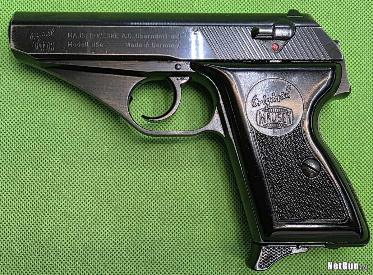 Niemiecki pistolet samopowtarzalny konstrukcji Alexa Seidela, który trafił do produkcji w drugiej połowie 1940 r. głównie dzięki zainteresowaniu Kriegsmarine. Po zajęciu fabryki Mausera w Oberndorfie przez wojska francuskie, produkcję utrzymano jeszcze do 1946 r. po czym zaprzestano. Produkcję oryginalnego modelu HSc zakłady Mausera wznowiły dopiero w październiku 1968 roku i do grudnia 1977 wyprodukowano 63 118 sztuk, głównie na rynek amerykański. Oferowany egzemplarz wyprodukowany został w 1968 r. a więc pochodzi z samego początku powojennej serii. Broń znajduje się w doskonałym stanie technicznym, lufa w stanie idealnym. Wszystko w 100% oryginalne i zgodne numerycznie, wykończenie fabryczne. W komplecie jeden magazynek.